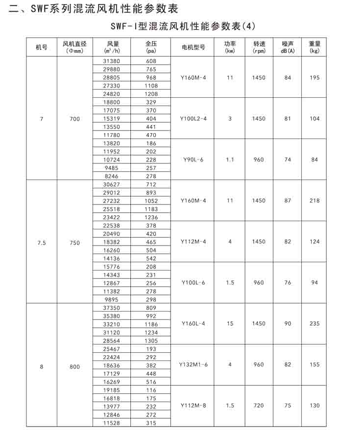 二、SWF(HLF、GXF)-I、II、H 系列高效混流風(fēng)機(jī)