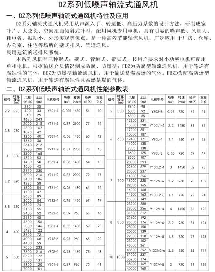 六、DZ 系列低噪聲軸流風機