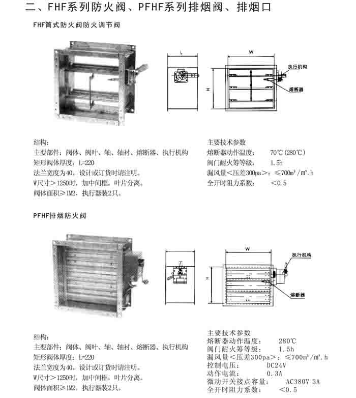 一、FHF WSDc-K、PFHF WSDc-K 系列防火閥、排煙閥、排煙口、送風口
