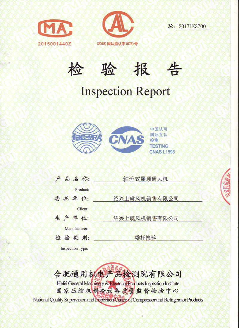 生產許可證檢驗報告低噪聲屋頂風機