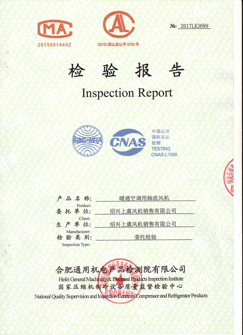 生產許可證檢驗報告低噪聲軸流風機